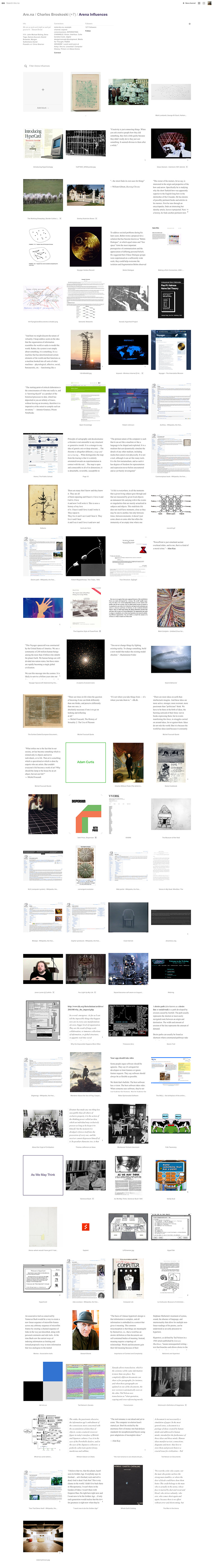 Our intention behind Are.na is to build a platform that helps people continually recontextualize information into new ideas and help us all understand the vast amount information we face on a daily basis.